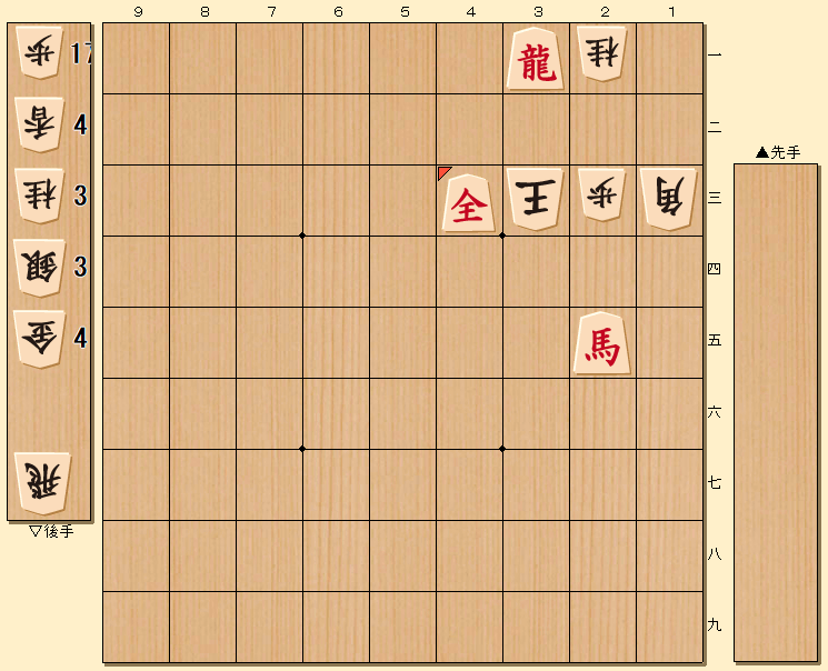 ▲3一龍 △3三玉 ▲4三銀成 までの三手詰め