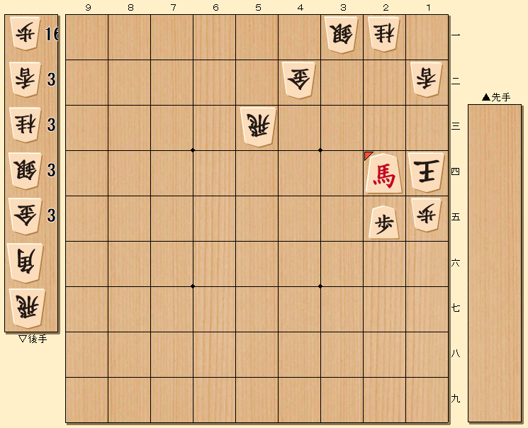 ▲1二金 △同香 ▲1四飛 △同玉 ▲2四馬 までの五手詰め
