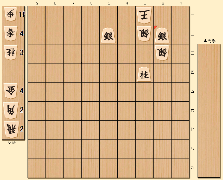 ▲3二飛成 △同銀上 ▲3一馬 △同玉 ▲2二銀 までの五手詰め