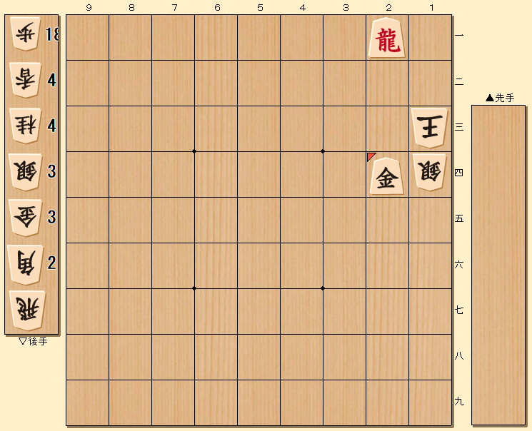 ▲2三歩成 △同銀 ▲1四香 △同銀 ▲2四金 までの五手詰め